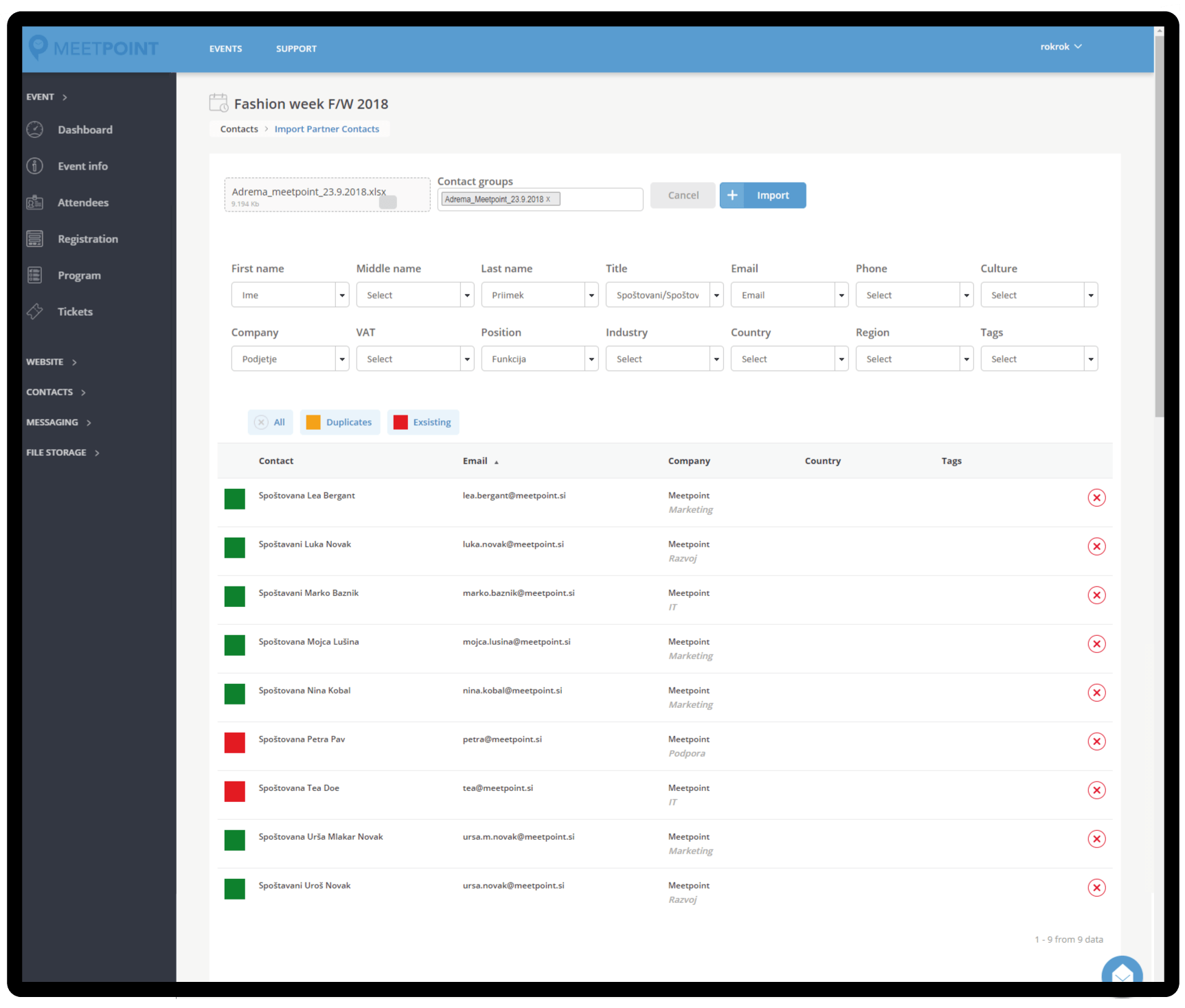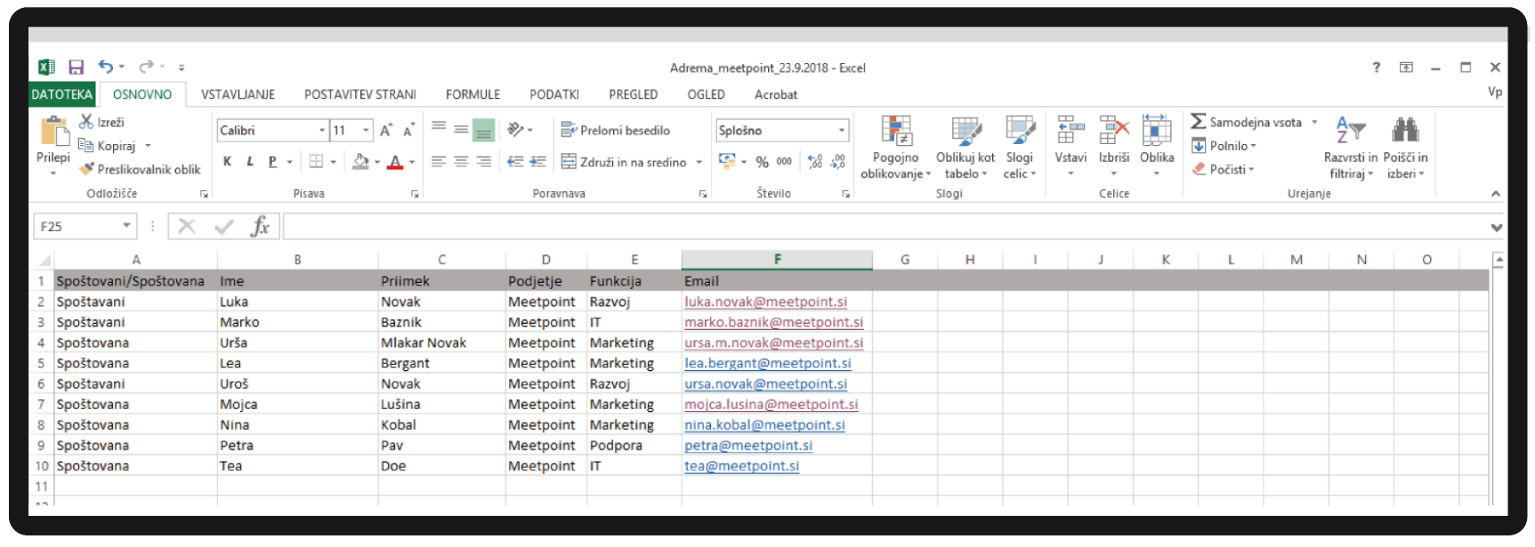 - lahko, da v excelu manjka e-mail - oseba dobi mil z meetpoint končnico????