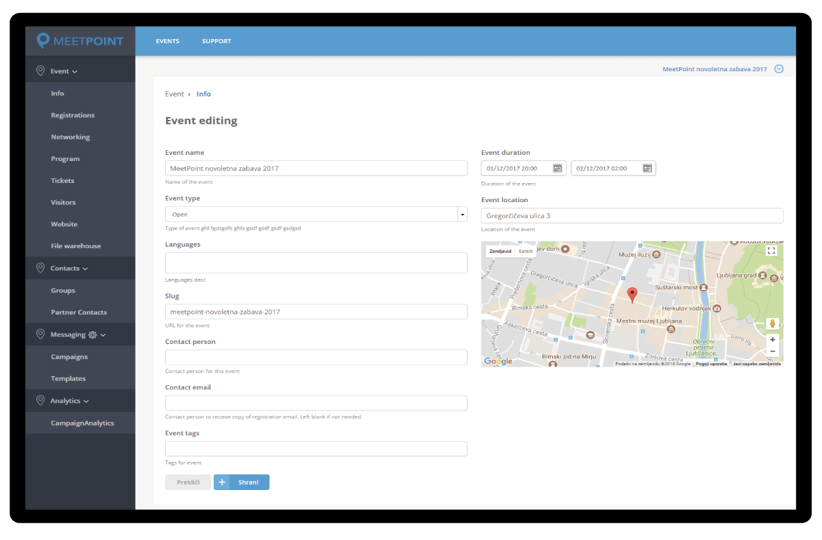 Imamo različna polja, kamor ročno vpišemo podatke. Za nas je najbolj pomemben e-mail. Če ni e-maila ni kontakta. Glej: